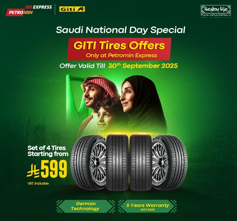 - Available only at Petromin Express tire stations