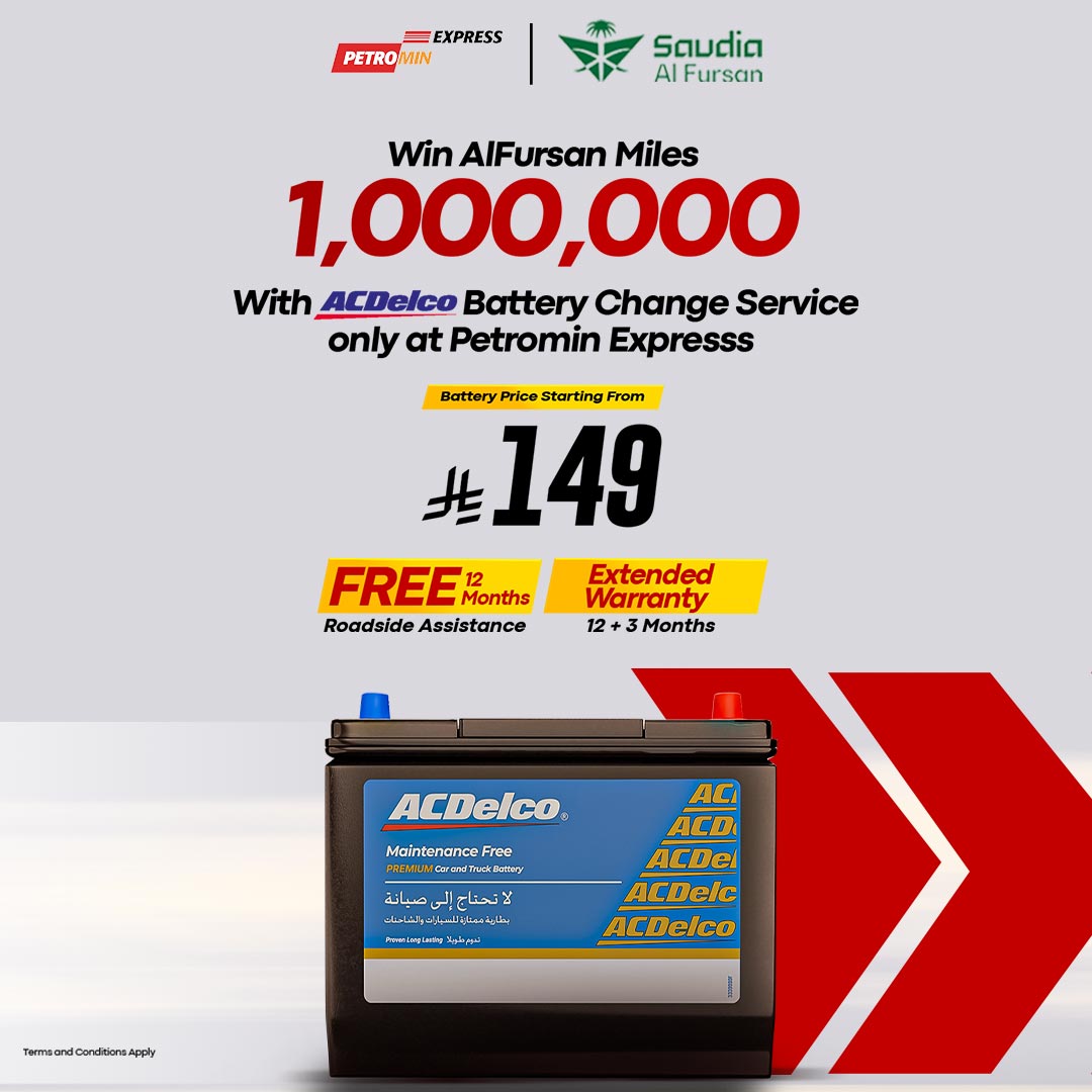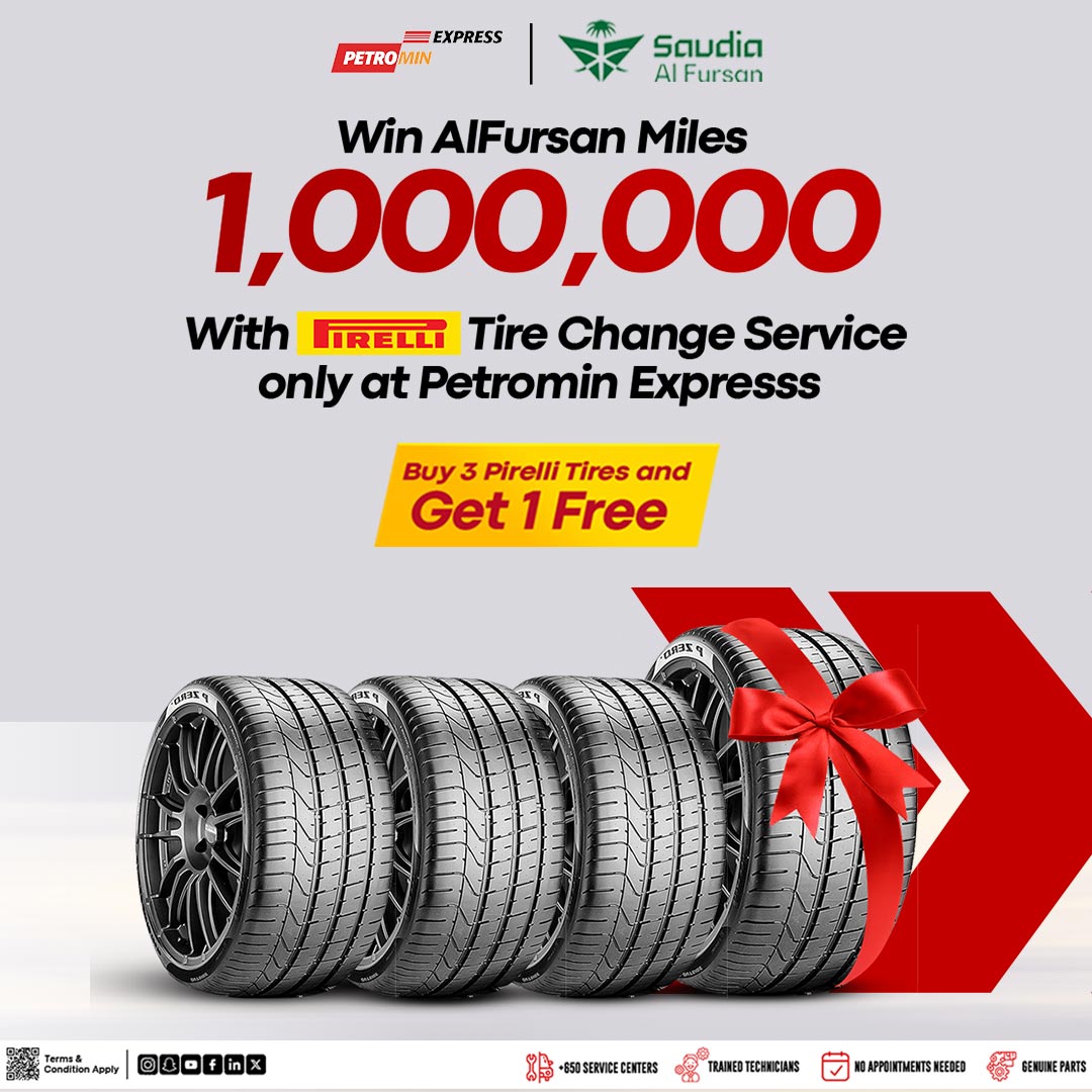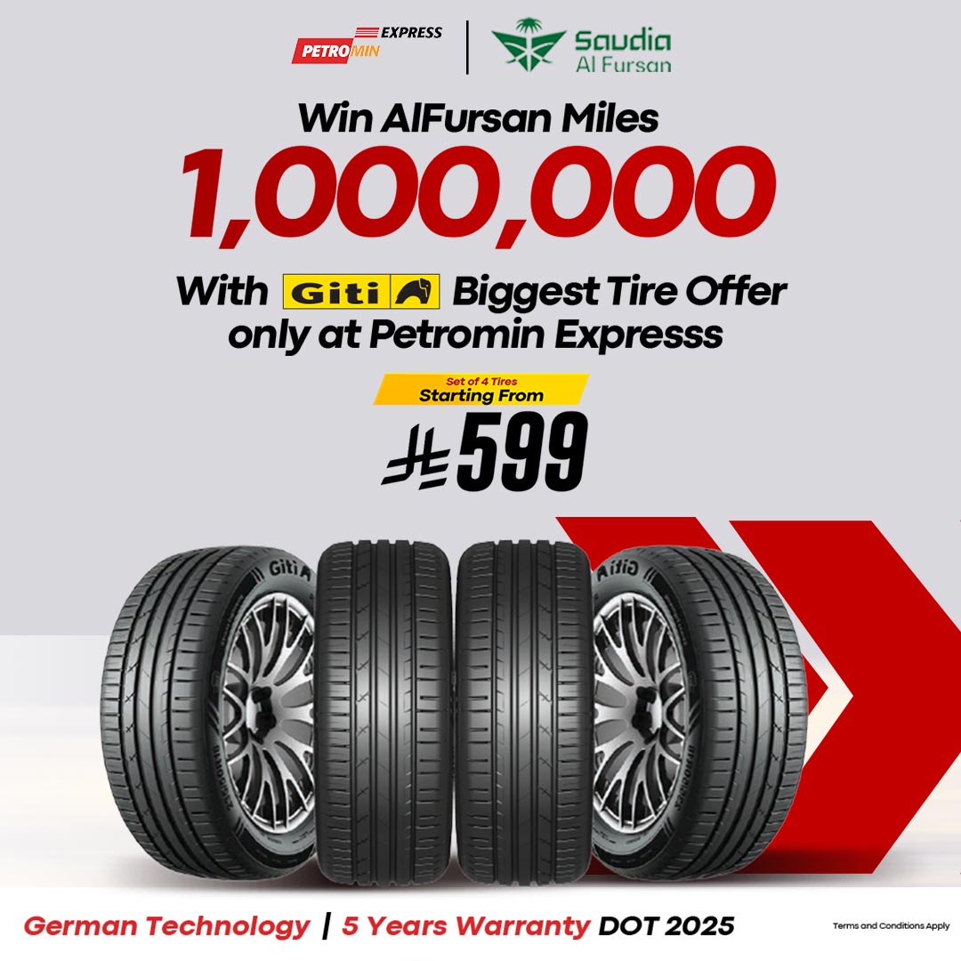 - Available only at Petromin Express tire stations